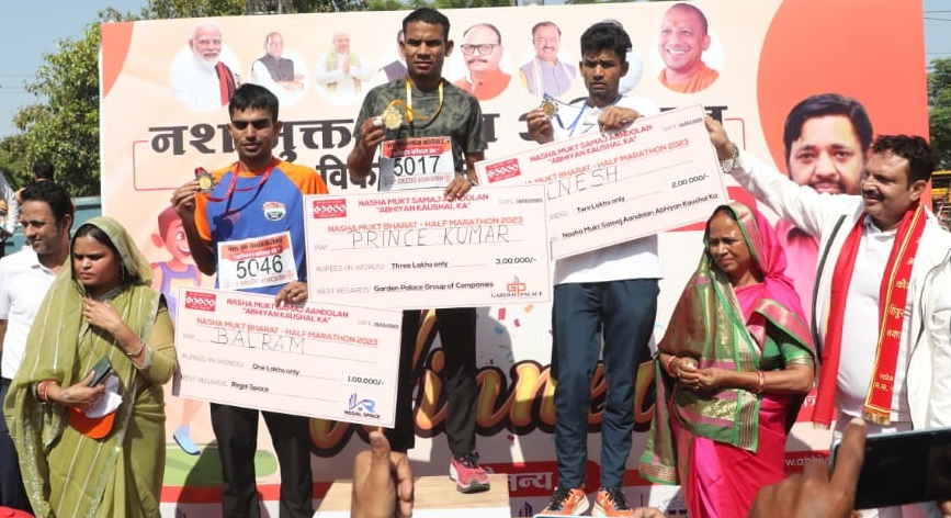 नशामुक्त हॉफ मैराथन में प्रथम विजेता रहे प्रिंस कुमार ने कहा कि वह युवाओं से अपील करते हैं कि किसी भी प्रकार के नशे से दूर रहें और अपनी दोस्ती नशामुक्त दोस्ती रखें। द्वितीय स्थान प्राप्त करने वाले दिनेश ने कहा कि युवा नशे से दूर रहें अगर वह नशा करना शुरू कि ये तो फि र वह दौड़ या किसी प्रकार के खेल में अच्छा प्रदर्शन नहीं कर पाते हैं। ऐसे कई उदाहरण उन्होंने अपने सामने देखे हैं इसलिये वह हमेशा नशा करने वाले लडको से दूर रहते हैं और उनसे दोस्ती नहीं रखते। तीसरे विजेता बलराम ने भी युवाओं को नशे से दूर रहने और नशामुक्त भारत बनाने की अपील की। केंद्रीय राज्य मंत्री कौशल किशोर ने कहा हमारा देश युवाओं का देश है और आज का युवा जो देश की प्रगति की नींव है। वह नशे की तरफ भटक रहा है इसलिये युवाओं को खेल की तरफ जाना चाहिये। अपनी दोस्ती नशा मुक्त दोस्ती रखनी चाहिये जिससे वह भविष्य में किसी प्रकार का नशा ना करें जिससे उनकी प्रतिभा में और भी निखार आये। वह अपने परिवार समाज और देश के लिए अपना सार्थक योगदान दें।